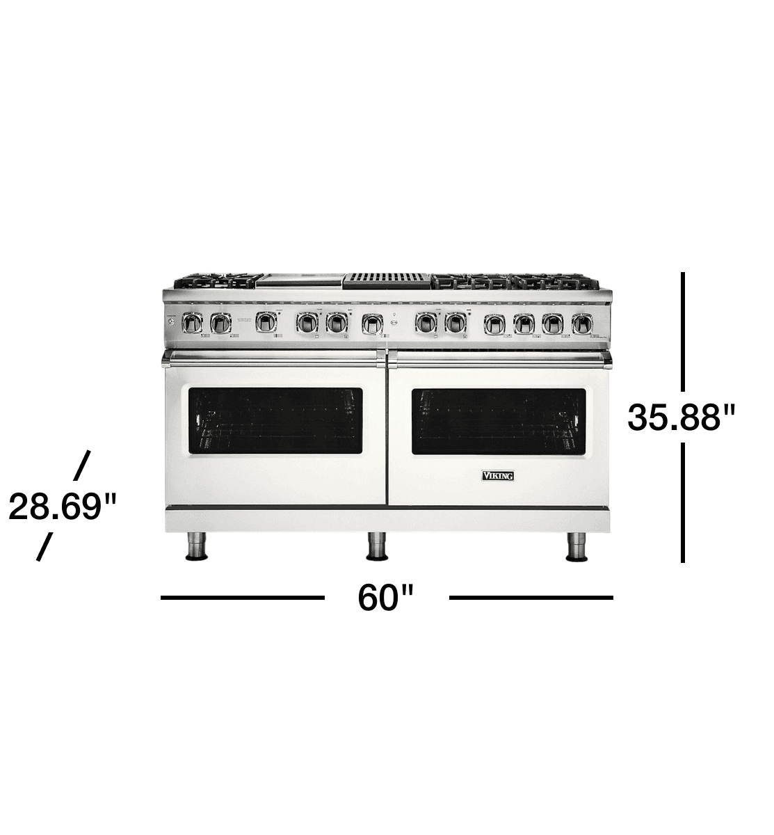 -Elevate your culinary experience with the Viking 60""W Dual Fuel Self-Clean Sealed Burner Range, a masterpiece of design and functionality. This premium range, finished in a sleek Pure White, seamlessly blends into any modern kitchen while delivering professional-grade performance.