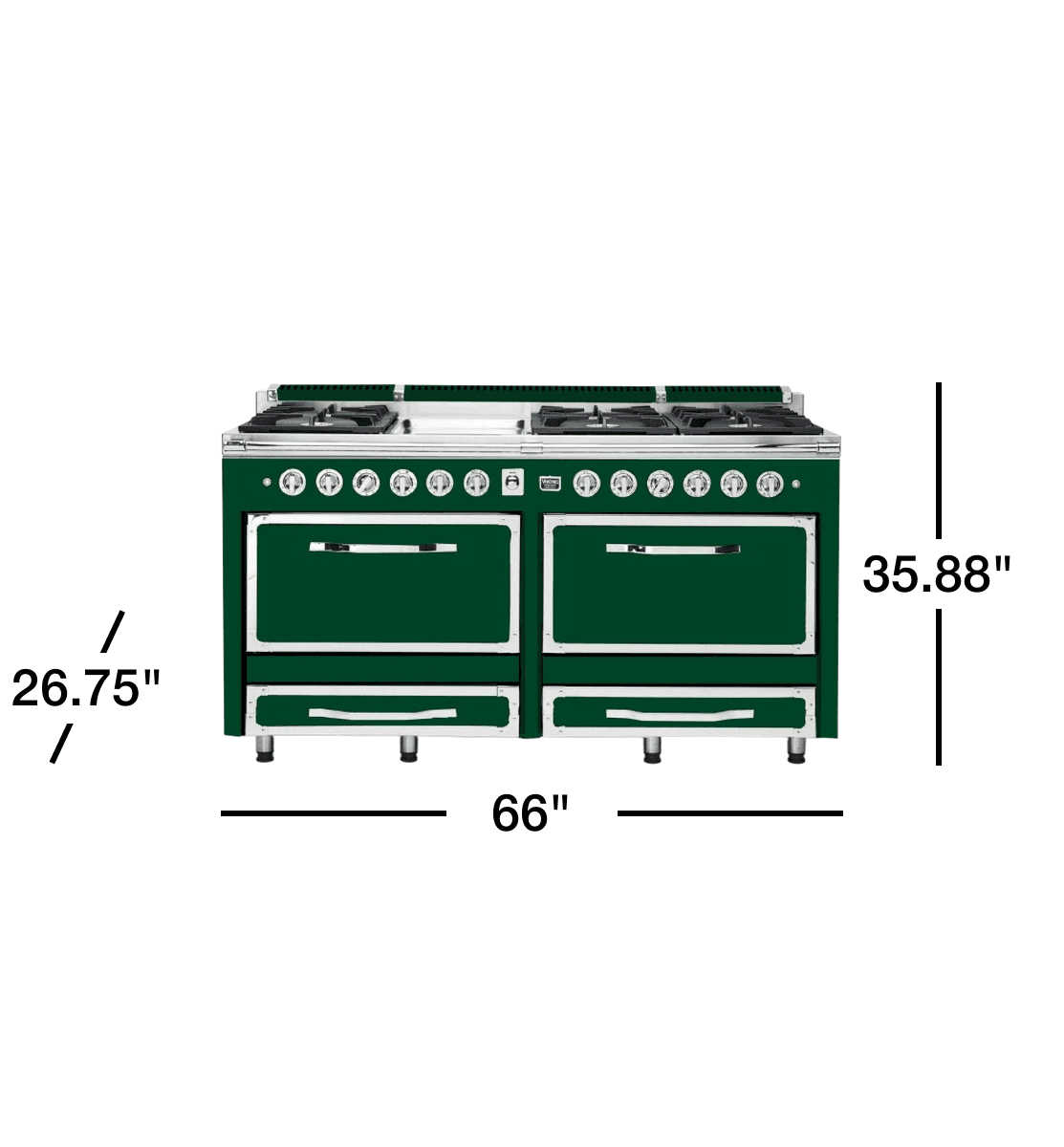 VIKING 66"W. Tuscany Dual Fuel Range with Storage Drawer, Continuous Grates, Griddle - Ivy