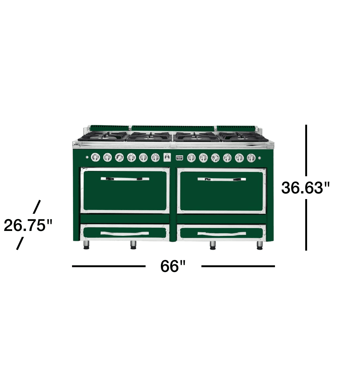 VIKING 66"W. Tuscany Dual Fuel Range with 8 Sealed Burners, 8 Cooking Functions - Ivy