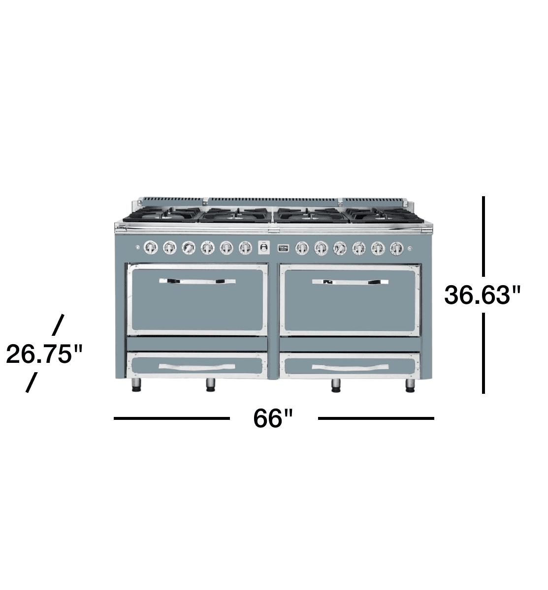 VIKING 66"W. Tuscany Dual Fuel Range with 8 Sealed Burners, Storage Drawer - November Sky