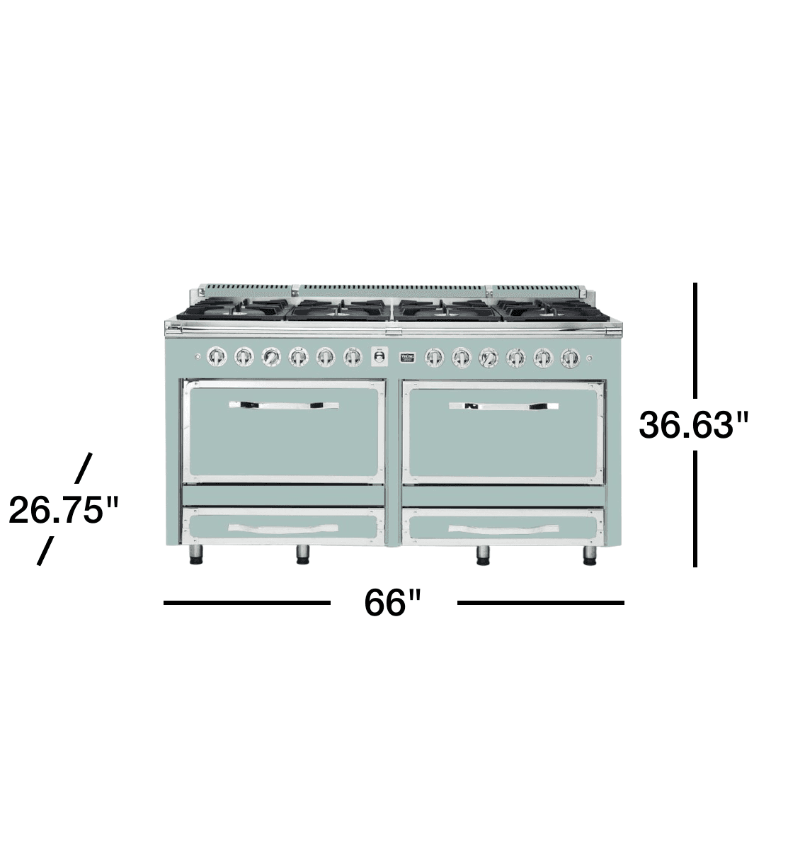 Elegant Design: The Tuscany series is inspired by the timeless beauty of Italian craftsmanship. The 66" range features a sophisticated splash of color, adding a touch of elegance to any kitchen decor