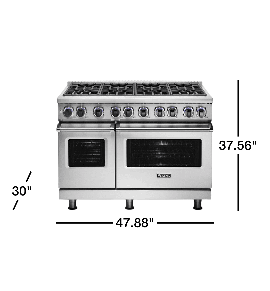 Elegant Design: The sleek stainless steel finish and professional-grade design make this range a stunning centerpiece in any kitchen, combining form and function seamlessly.Whether you're a professional chef or a passionate home cook, the Viking 48"W./24"D. Dual Fuel Sealed Burner Range with 8 burners is the ultimate tool to bring your culinary creations to life. Experience the perfect blend of power, precision, and style with Viking.