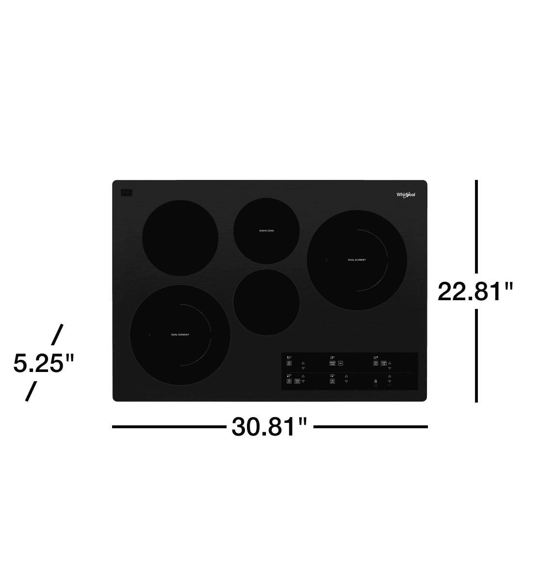 WHIRLPOOL 30-inch Electric Ceramic Glass Cooktop with Two Dual Radiant Elements, 5 Elements, FlexHeat Dual-Element, Warm Zone Element, Tap Touch Controls - Black - WCE97US0KB