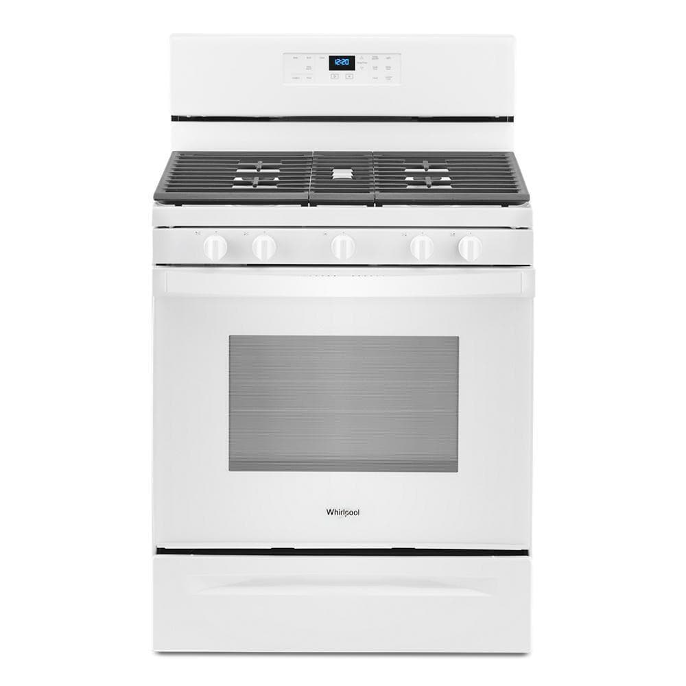 Whirlpool 5.0 cu. ft. gas range with center oval burner, SpeedHeat™ Burner, SpillGuard™ Cooktop, Temperature Sensor, Closed Door Broiling, and Control Lock: White