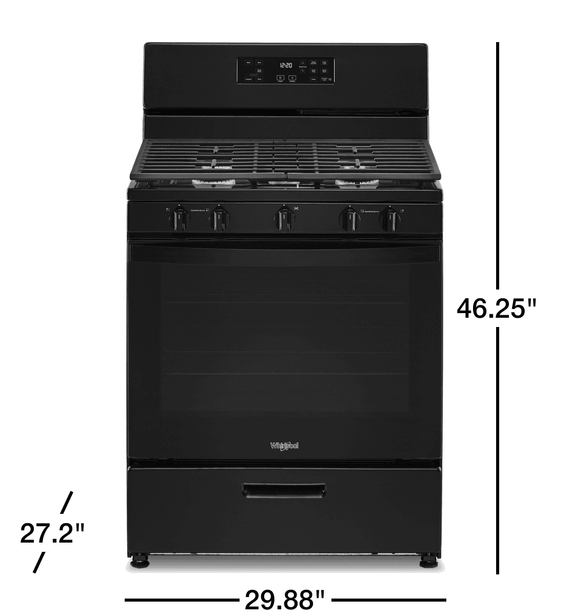 Whirlpool 5.1 Cu. Ft. Freestanding Gas Range with Edge to Edge Cooktop, SpeedHeat(TM) Burners, Frozen Bake(TM), Keep Warm, Broiler Drawer - Black