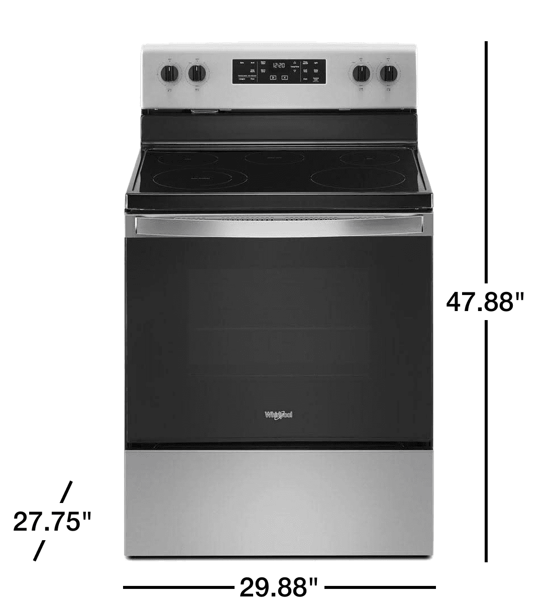 WHIRLPOOL 30 Inch Freestanding Electric Range with 5 Radiant Elements, 5.3 cu. ft. Oven Capacity, SteamClean, Frozen Bake Technology, FlexHeat - WFE505W0JS