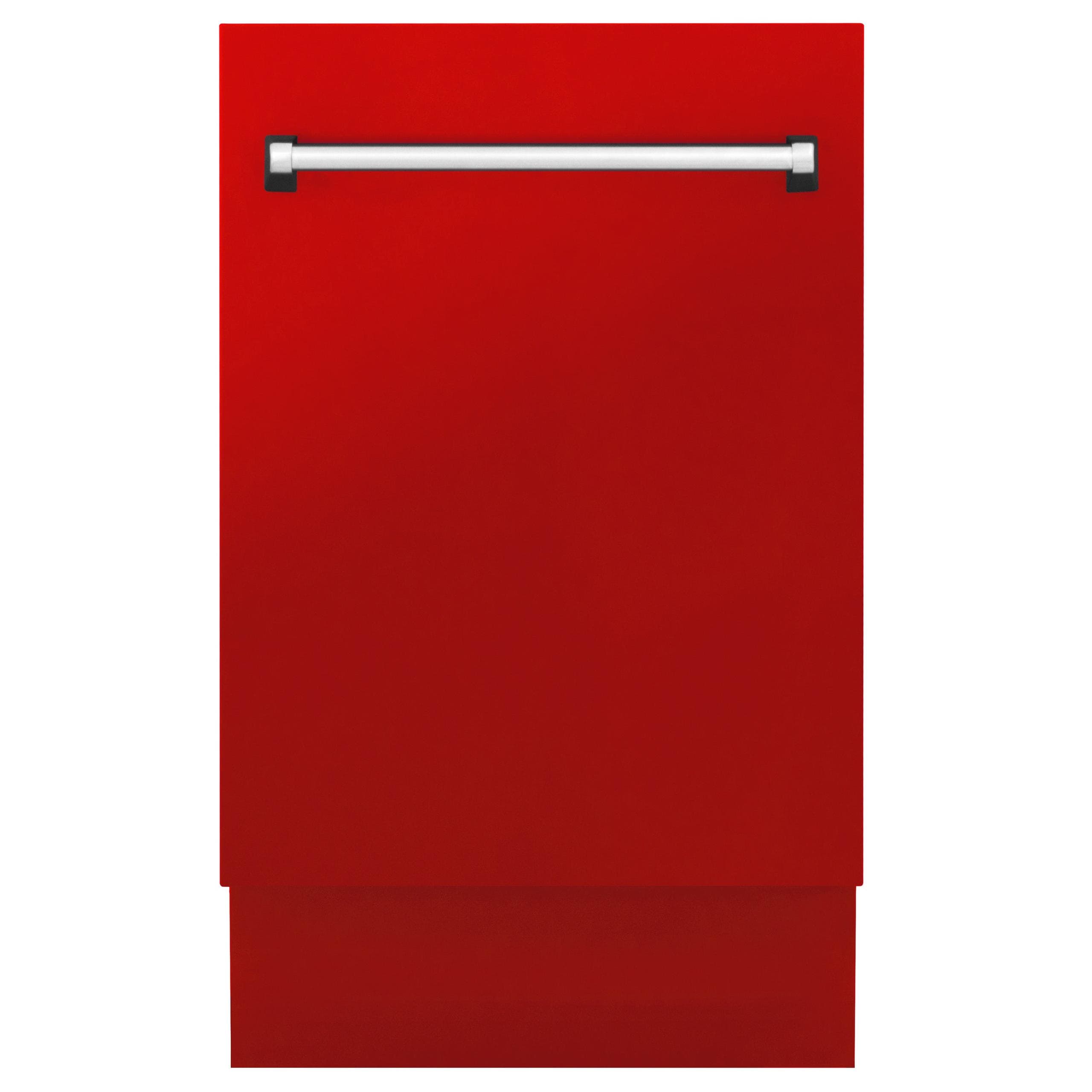 ZLINE KITCHEN AND BATH 18" Tallac Series 3rd Rack Top Control Dishwasher with Traditional Handle, 51dBa, Multiple Filter System, Sanitize, EcoWash - Red Matte - DWVRM18