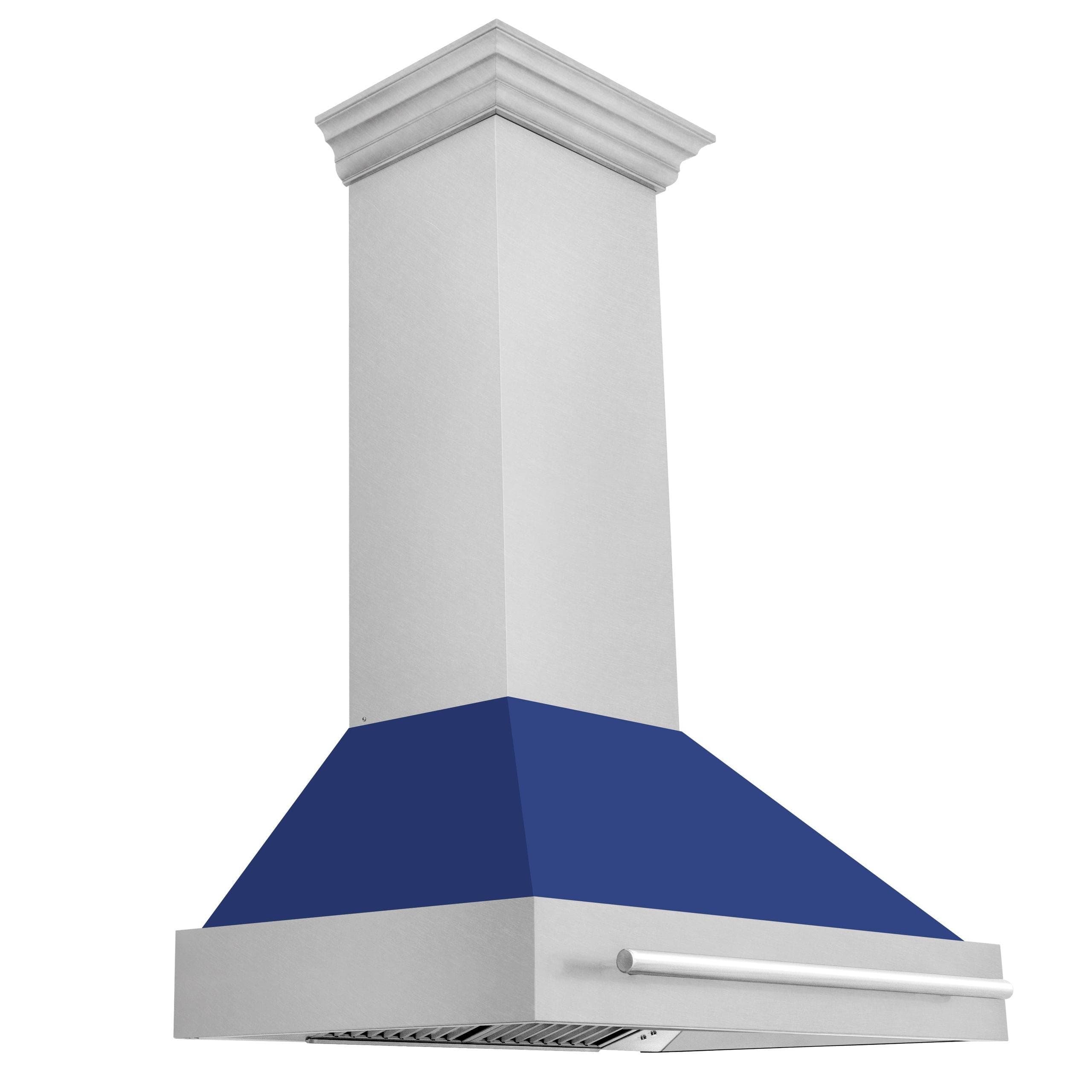 ZLINE Kitchen and Bath 36 in. DuraSnow Stainless Steel Range Hood with DuraSnow Shell, LED Lighting, Dishwasher Safe Baffle Filters, Push Button Controls [Color: Blue Matte]