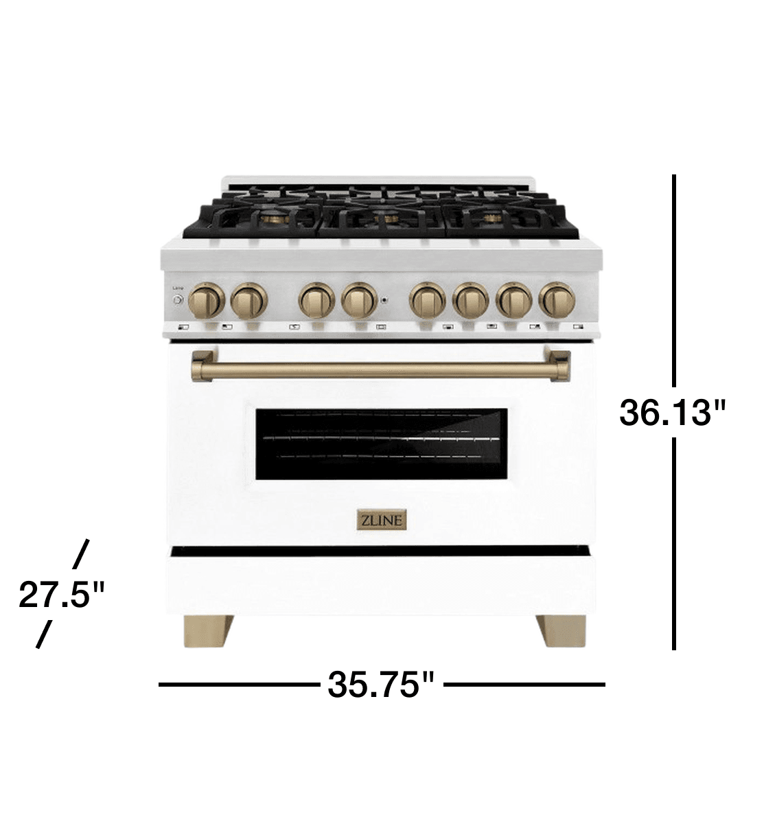 ZLINE Kitchen and Bath Autograph Edition 36" 4.6 cu. ft. Dual Fuel Range with Gas Stove and Electric Oven in Stainless Steel with White Matte Door and Accents [Color: Champagne Bronze]