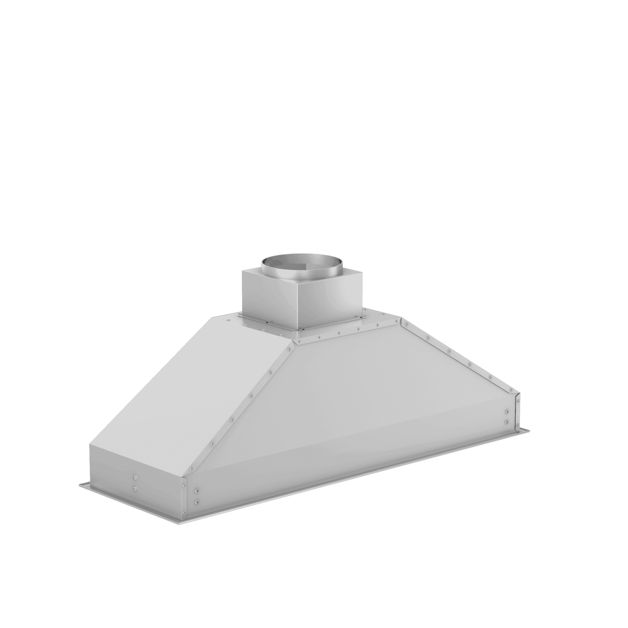 Fixed vent with ductwork: Easily connects to the top of the range hood for external venting.